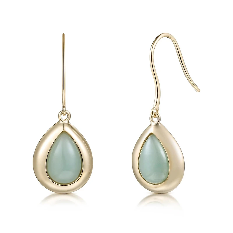 10K Yellow Gold Pear Jade Drop Earrings