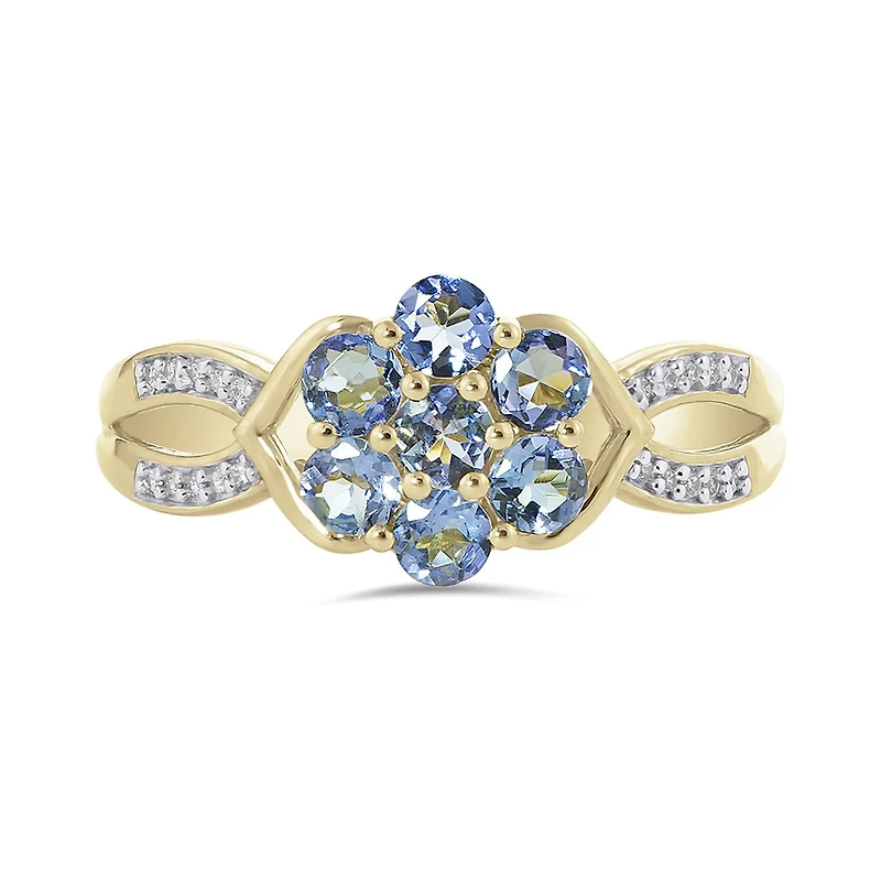10K Yellow Gold Tanzanite & 0.05CTW Diamond Cluster Ring
