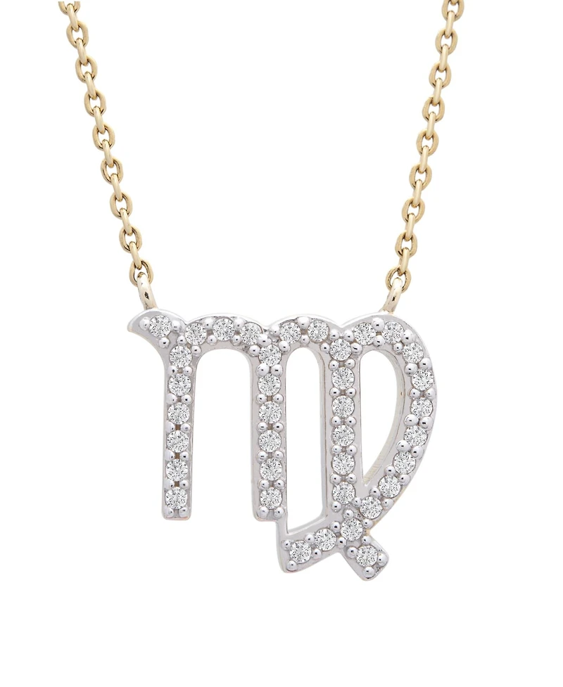 Created in sunny yellow gold and set with 0.10ctw of sparkling round diamonds, this Virgo pendant- from the Zodiac Collection- is suspended from a split cable link chain secured with a spring ring clasp. Virgo- The Virgin: August 23 to September 22