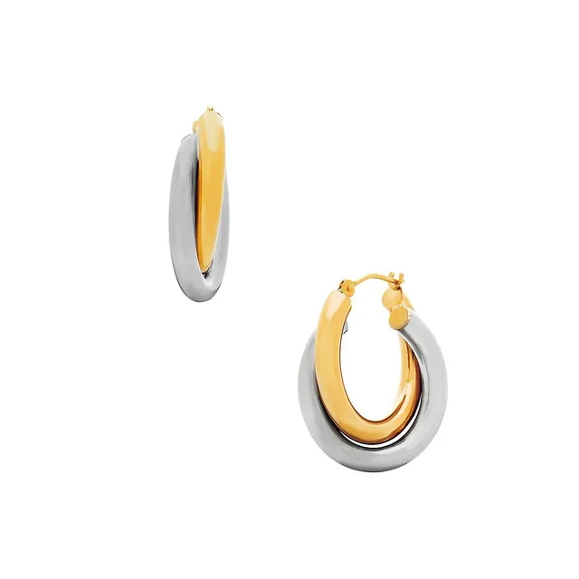 14K Two-Tone Gold Overlap Hoop Earrings