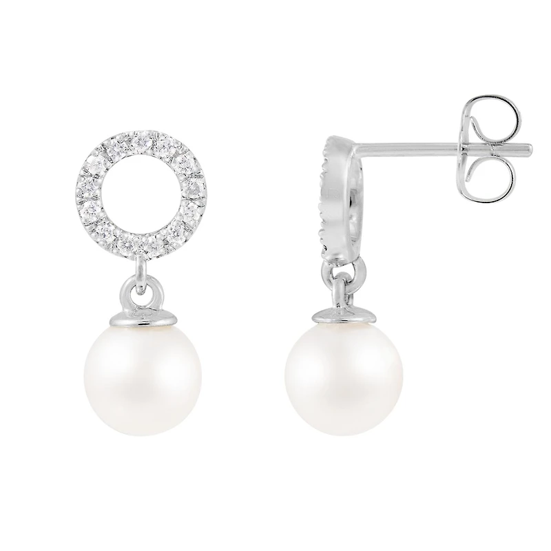14K White Gold 6.5-7mm Akoya Pearls and 0.20ctw Diamond Earrings