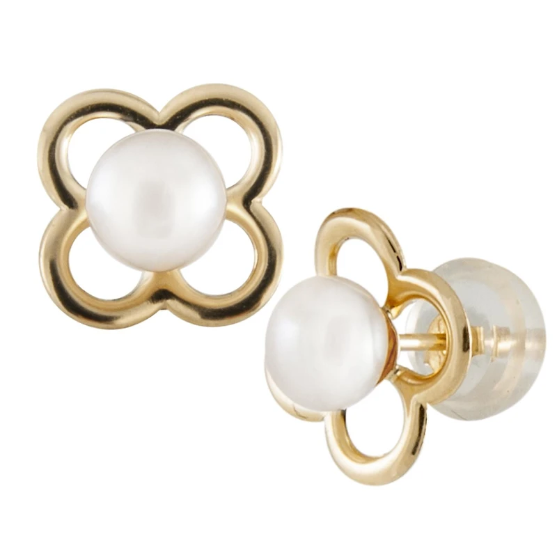 14K Yellow Gold 4-4.5mm White Freshwater Pearl Earrings