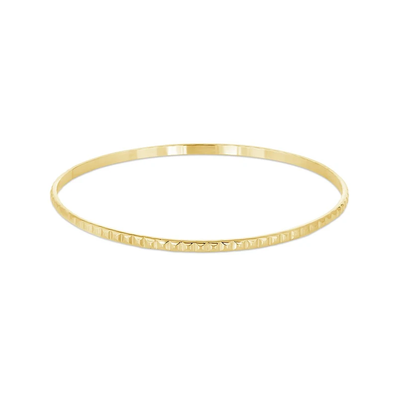 This classic yet trendy 14K yellow gold filled slip-on bangle is great for stacking with other bangles and is the perfect way to add a touch of elegance and sophistication to any ensemble. This stunning piece, with a beaded pattern, makes a lovely addition, suitable for all occasions.