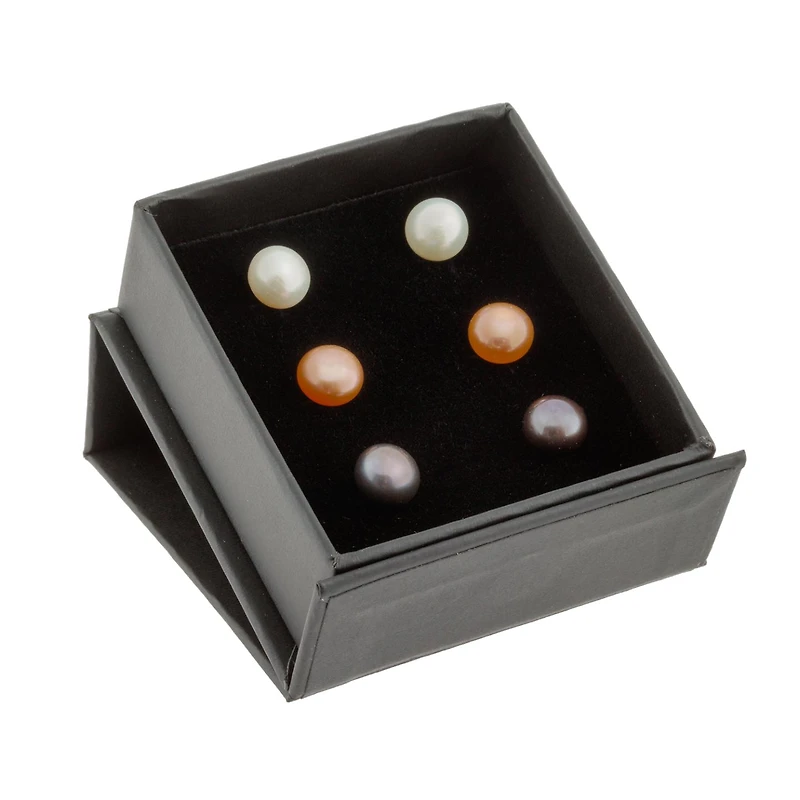 A set of 3 pairs of 14k yellow gold 7-8mm freshwater pearl stud earrings