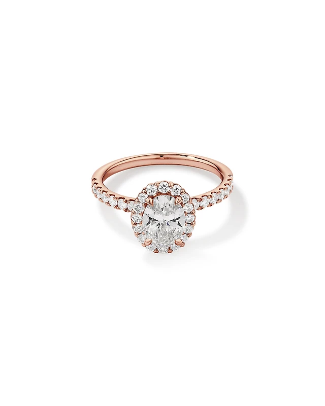 Carat TW Oval Cut Laboratory-Grown Diamond Halo Engagement Ring in 14kt Rose Gold