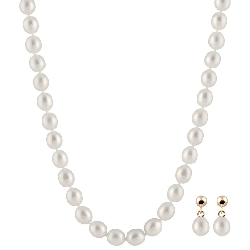 7-8mm white freshwater pearl necklace with 14k clasp and matching ball earrings.