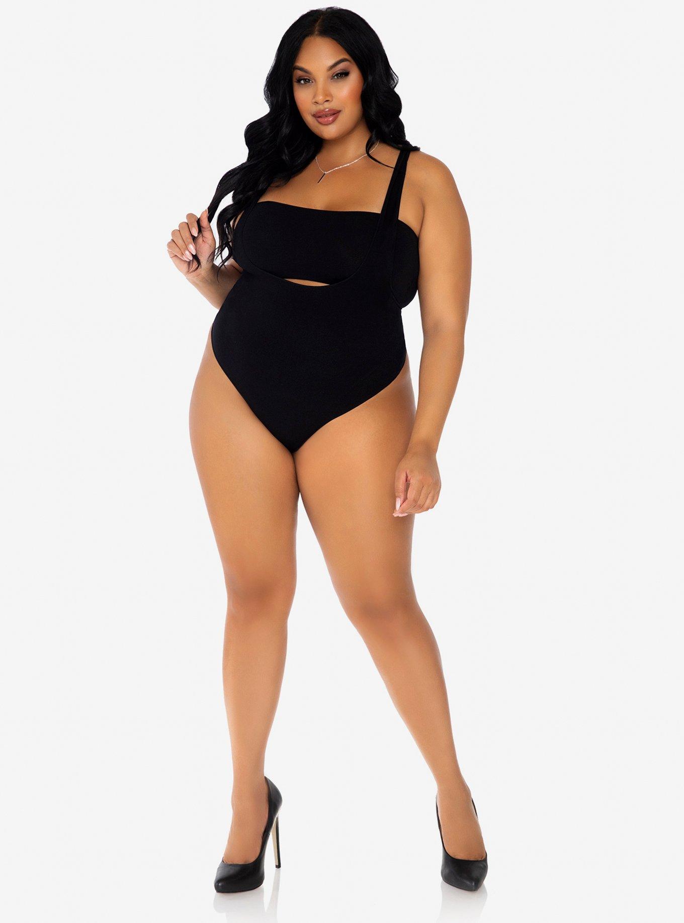 2 Piece Opaque Bandeau And Suspender Bodysuit Black Plus Size