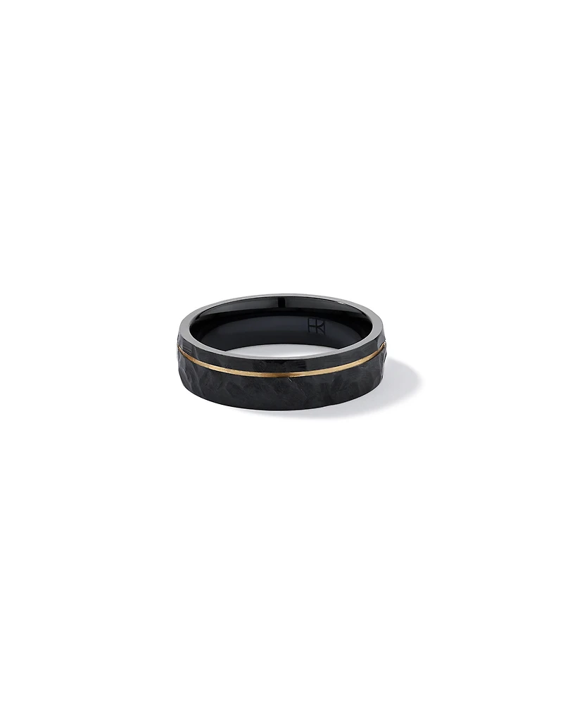 6mm Patterned Wedding Band in Black Titanium and 10KT Yellow Gold