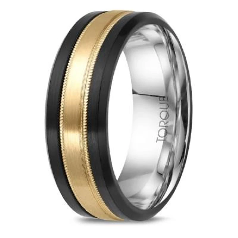 Strong and stylish, this 7.5mm band seamlessly blends the sleek, durable cobalt with the rich warmth of 10K yellow gold. The polished cobalt offers a contemporary edge, while the yellow gold adds a touch of timeless elegance. This distinctive design is perfect for those who appreciate both modern sophistication and enduring strength in their jewellery.