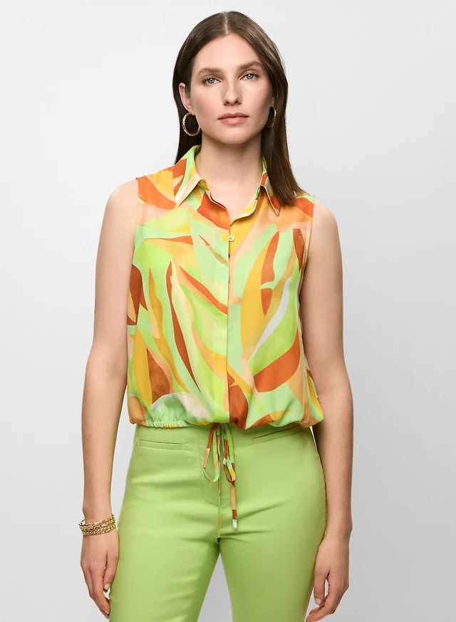 Abstract-Print Sleeveless Blouse