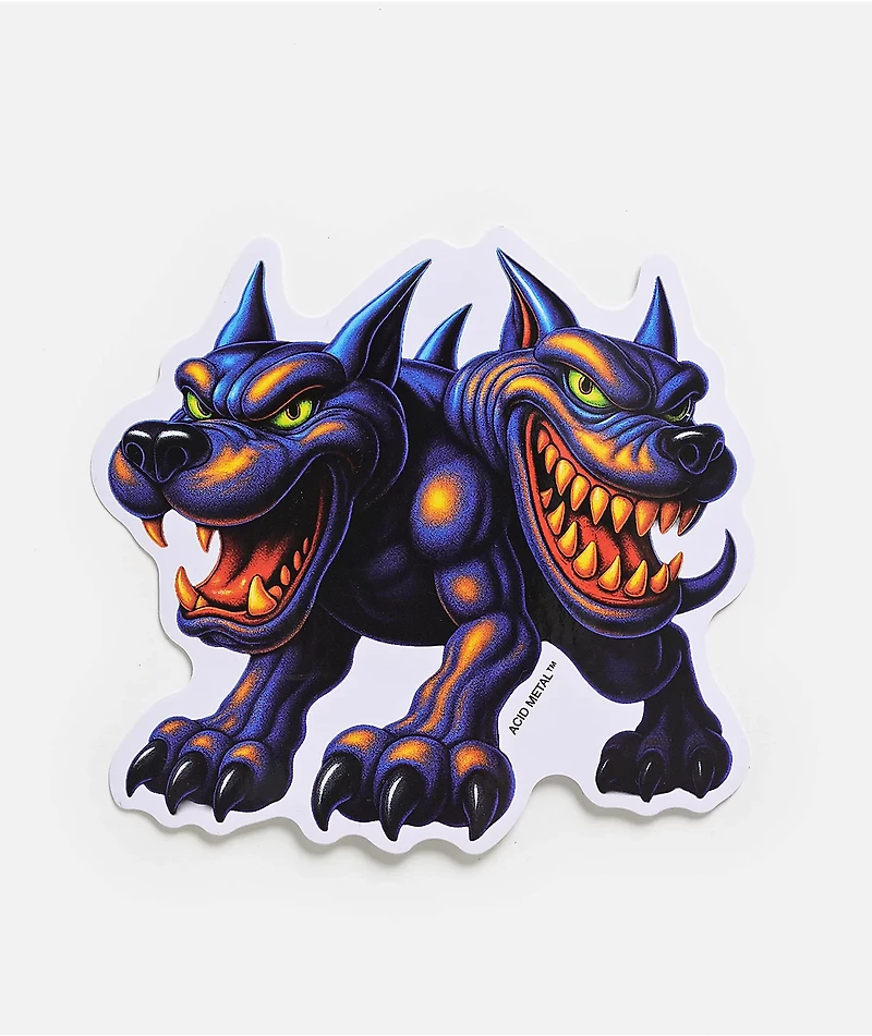 Adding a fun, yet edgy look to any hard surface, Acid Metal welcomes the Double Trouble sticker in a die-cut vinyl construction. Sporting a detailed rendition of a two-headed dog with menacing looks on each face, the decorative decal brings a tough l