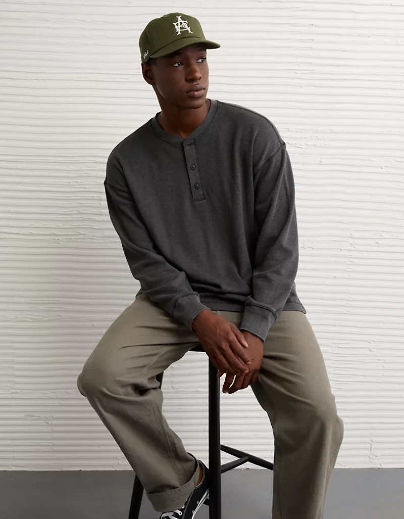 AE Boxy Washed Thermal Henley Shirt