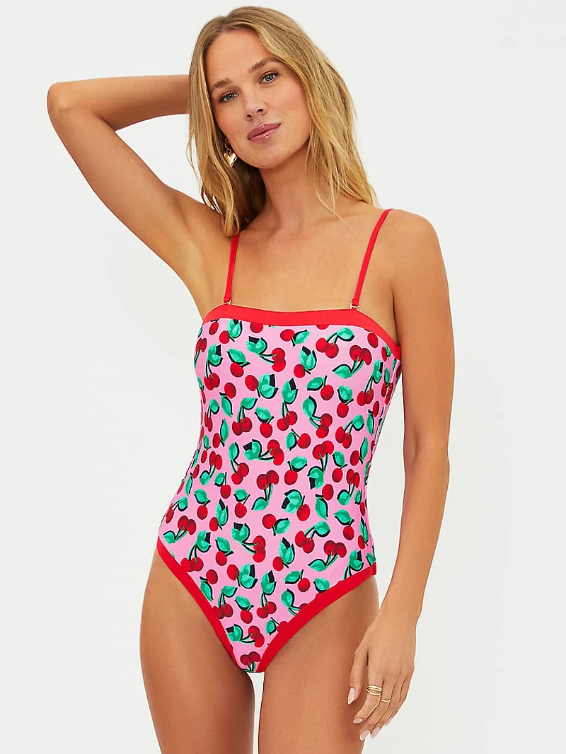 Adjustable and removable straps allow you to customize your beach or pool look. Adorned in a sweet pattern and finished with contrast piping, you won't want to leave for vacation without it. By Beach Riot: Swimwear and activewear inspired by the coolest West Coast trends.