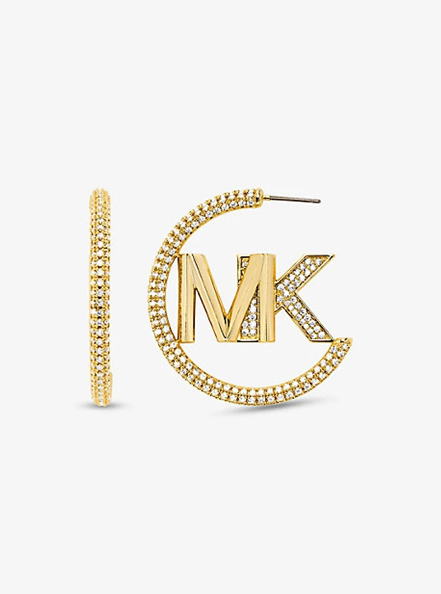 Anneaux doreilles en laiton à placage en métal précieux à logo et à pavé