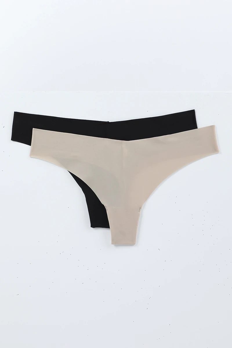Ardene 2-Pack Invisible Thong Panties in Beige | Size | Elastane/Polyamide