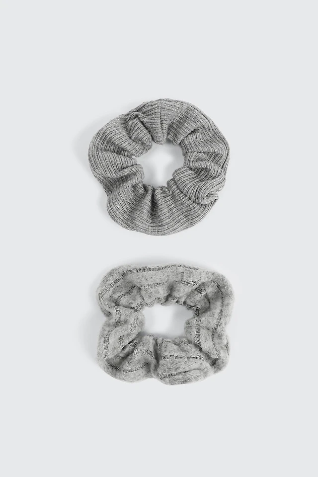 Ardene 2-Pack Super Soft Rib Scrunchies in Grey | Polyester/Elastane