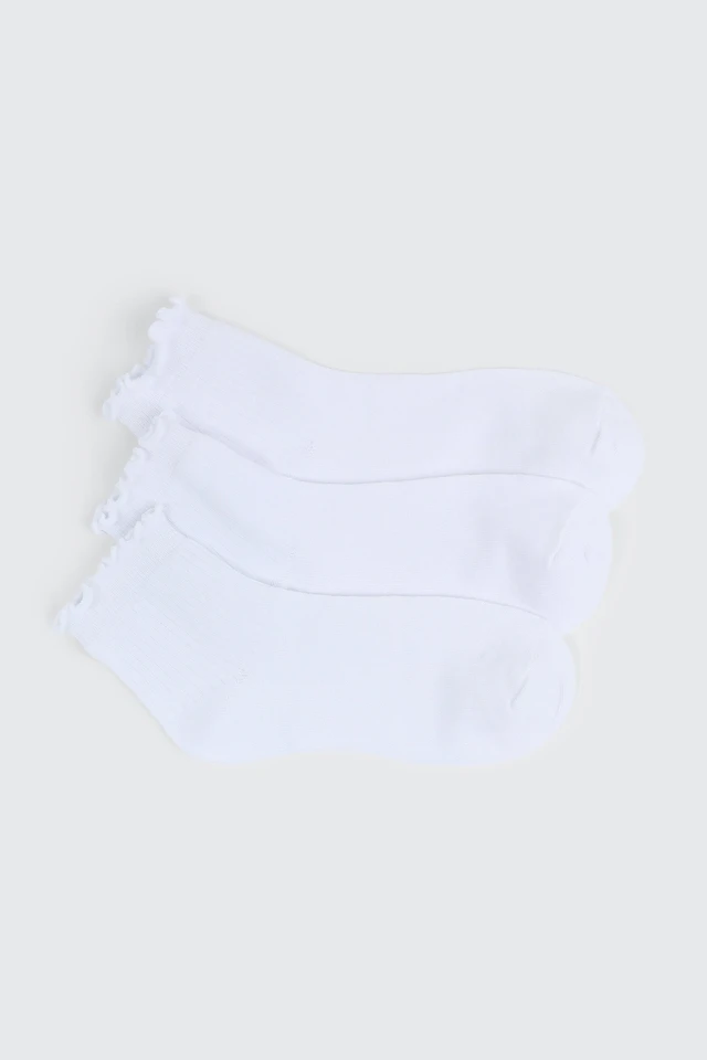Ardene 3-Pack Lettuce Edge Demi Crew Socks in White | Polyester/Spandex