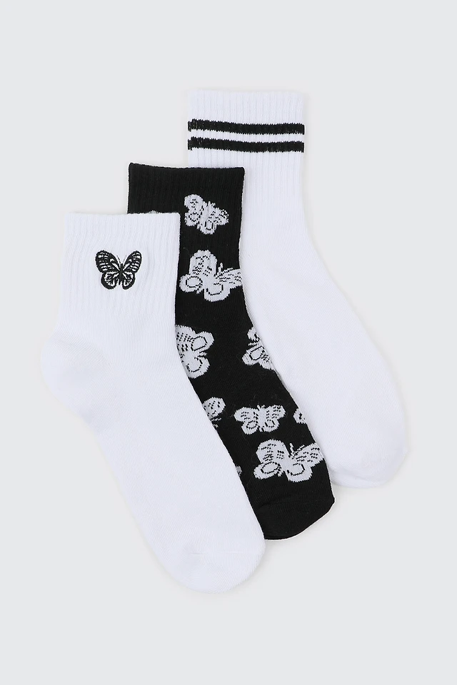 Ardene 3-Pack Butterfly Crew Socks | Polyester/Spandex