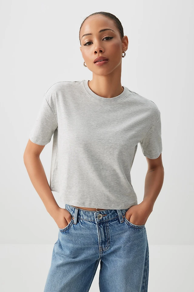 Ardene Basic Ultra Crop Fitted T-shirt in Light Grey | Size | Cotton/Elastane | Eco-Conscious