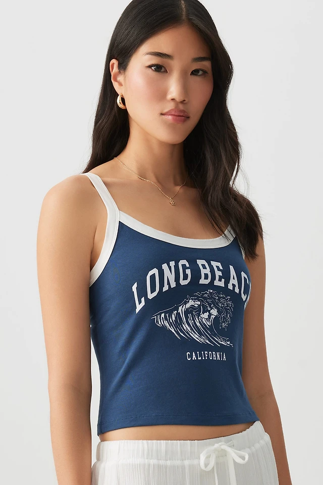 Ardene Beach Destination Tank Top in Dark Blue | Size | Spandex/Cotton