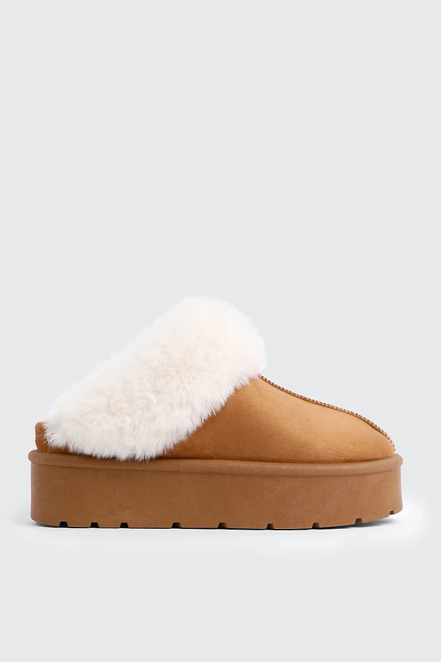 Ardene Faux Sheepskin Clogs in Cognac | Size | Faux Suede