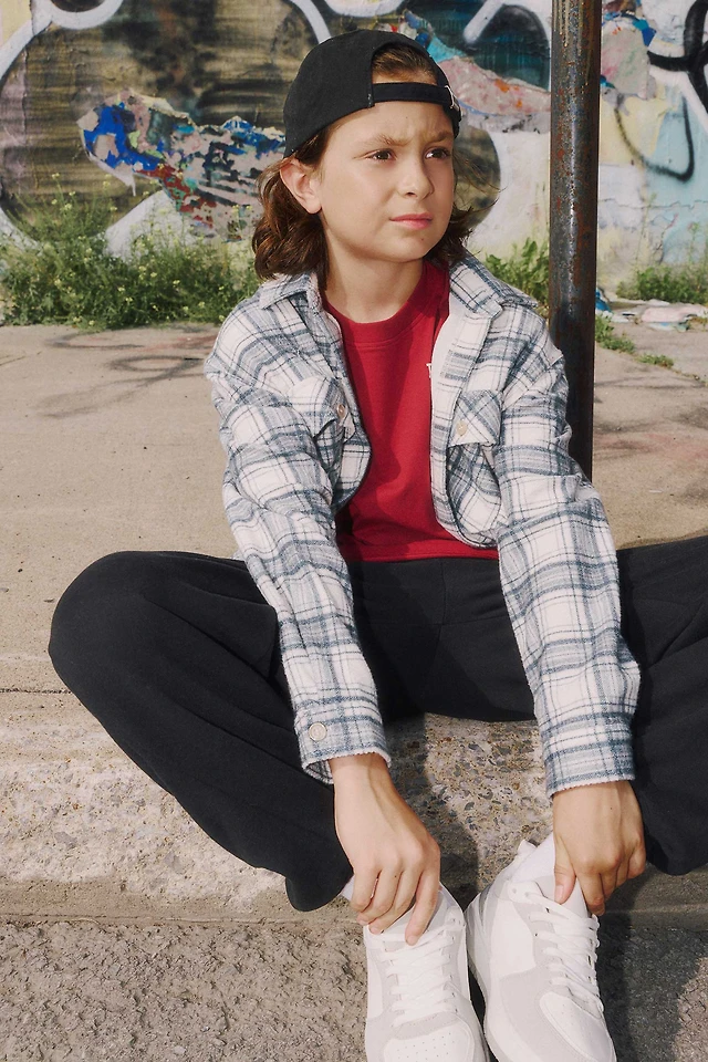 Ardene Kids Brushed Plaid Shirt in Beige | Size Large | Polyester/Cotton