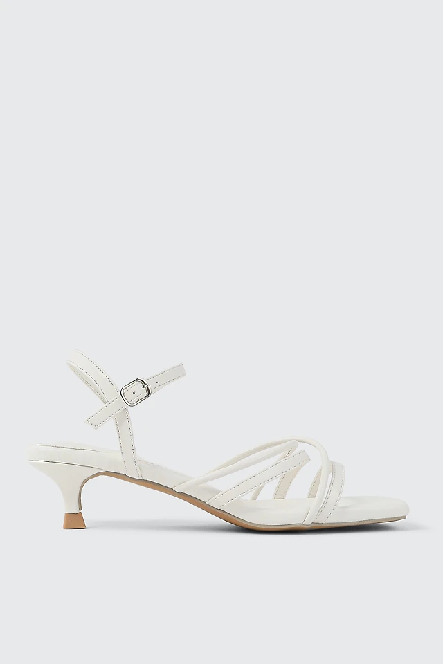 Ardene Kitten Heel Strappy Sandals in White | Size 10 | Faux Leather