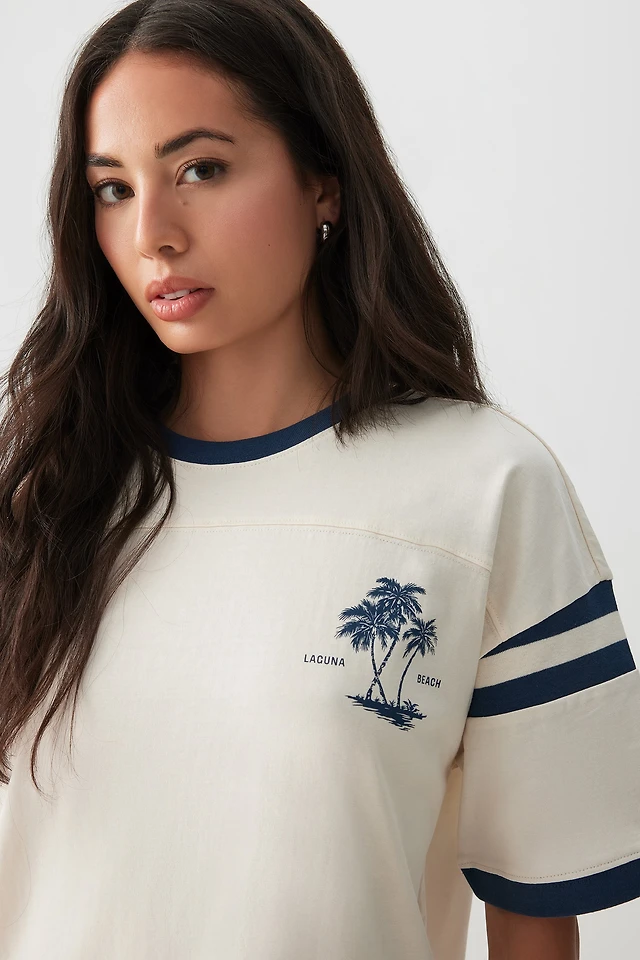 Ardene Oversized Graphic T-Shirt in Beige | Size | 100% Cotton