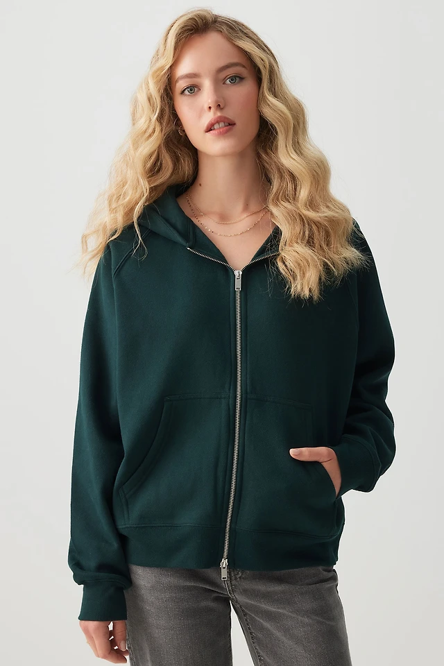 Ardene Oversized Raglan Zip Up Hoodie in Dark Green | Size | Polyester/Cotton | Fleece-Lined