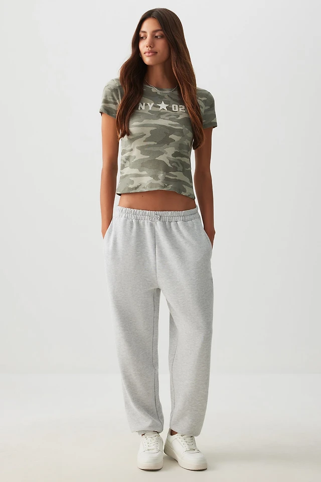 Ardene Destination Sweatpants in Light Grey | Size | Polyester/Cotton | Fleece-Lined