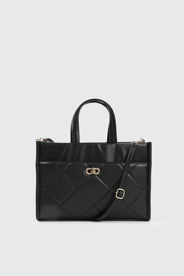 Ardene Quilted Faux Leather Tote Bag in Black | Faux Leather/Polyester | Eco-Conscious