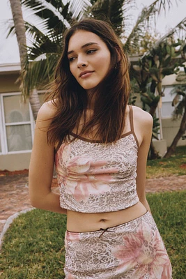 Cropped mesh tank top. Crew neck Fitted Ruched sides Choice of solids and prints Shell: 95% polyester, 5% spandex Lining: 100% polyester Model is wearing size SMatching bottom: 5A-AP34173-05 | Ardene Ruched Mesh Tank Top in Grey | Size XS | Polyester/Spandex