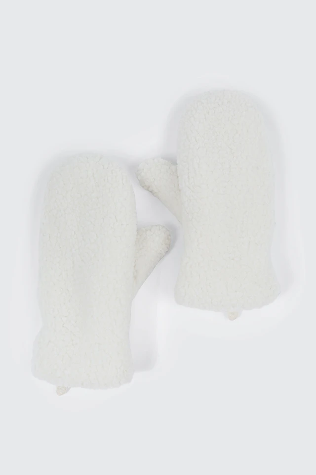 Ardene Sherpa Puffer Mittens in White | Polyester