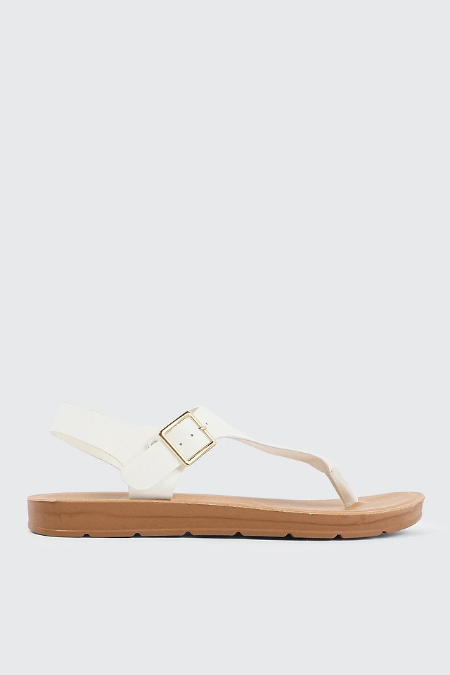 Ardene T-Strap Sandals in White | Size | Faux Leather | Eco-Conscious