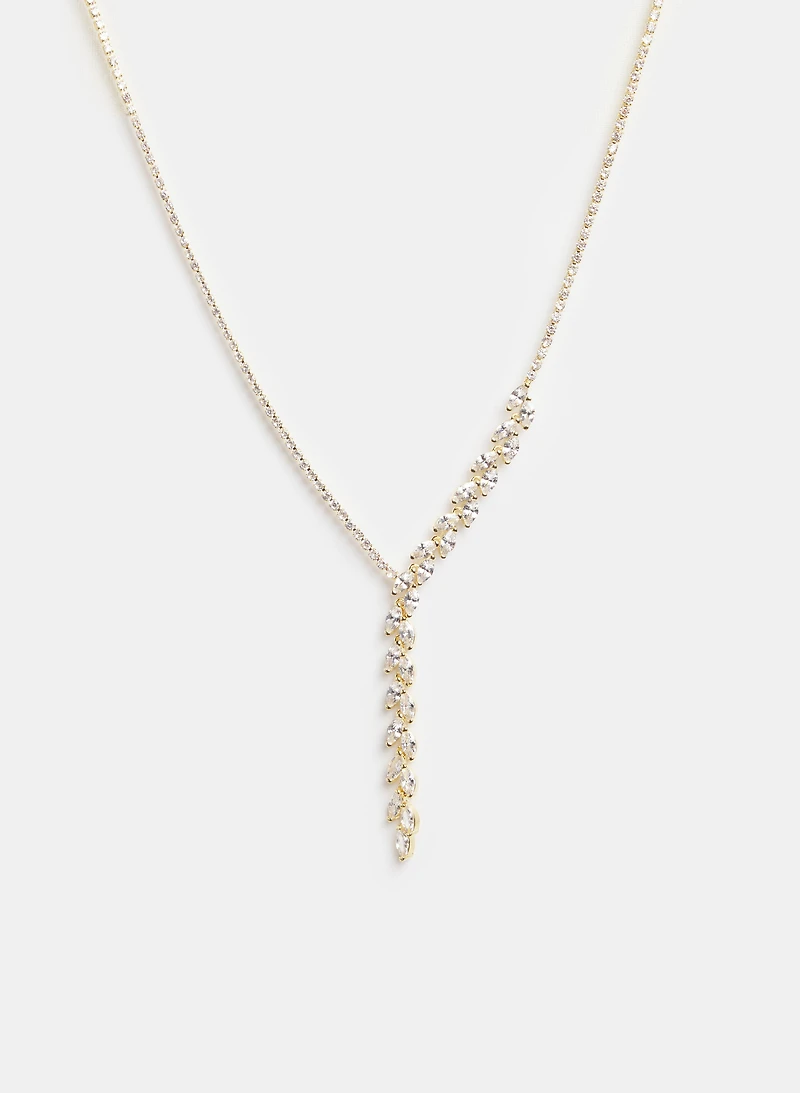 Our pretty Y-shaped necklace embellished with sparkling crystals adds an elegant and refined touch to any outfit. For a sophisticated look, pair it with a solid blouse and matching earrings.