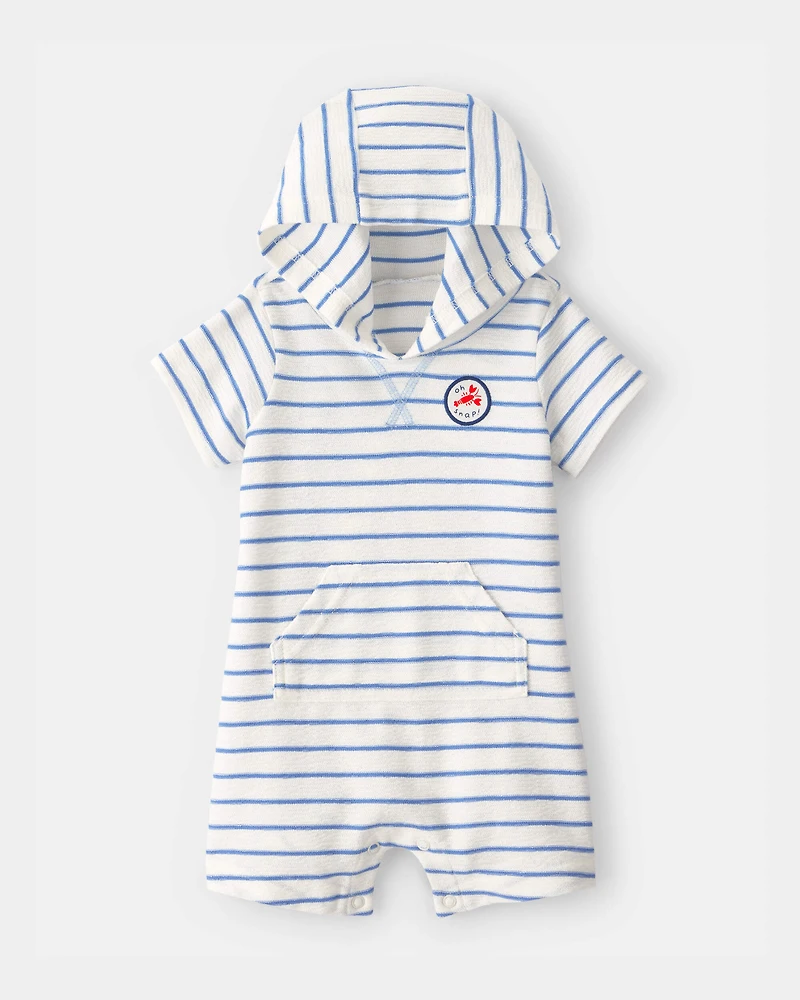 Baby Boy 'Oh Snap!' Lobster Stripe Short-Sleeve Hooded Romper - Blue/White