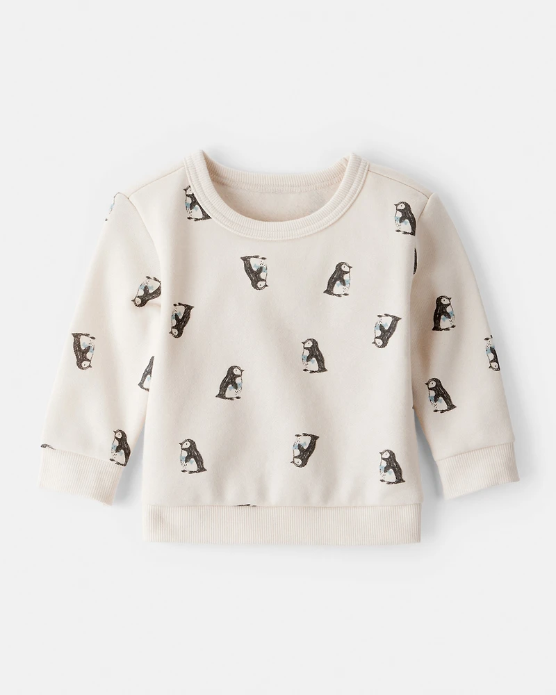 Baby Boy Penguin Print Fleece Sweatshirt - Cream