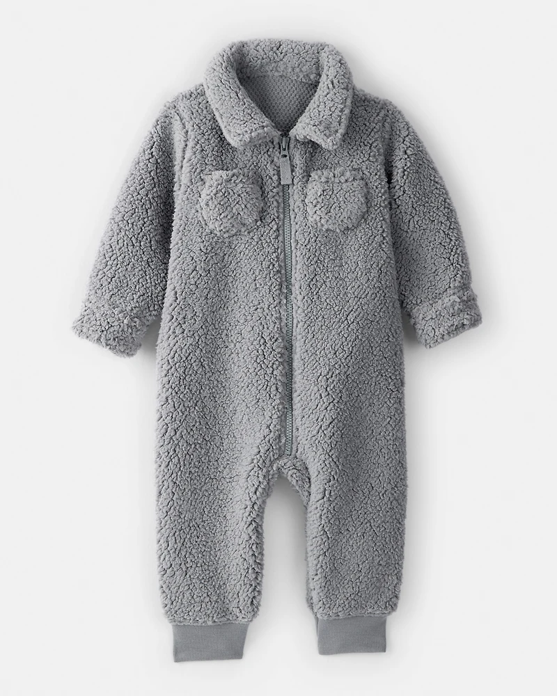 Baby Boy Sherpa Pocket Zip-Up Jumpsuit - GreyBaby Boy Sherpa Pocket Zip-Up Jumpsuit - Grey
