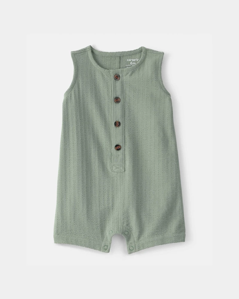Baby Boy Solid Sleeveless Romper - GreenBaby Boy Solid Sleeveless Romper - Green
