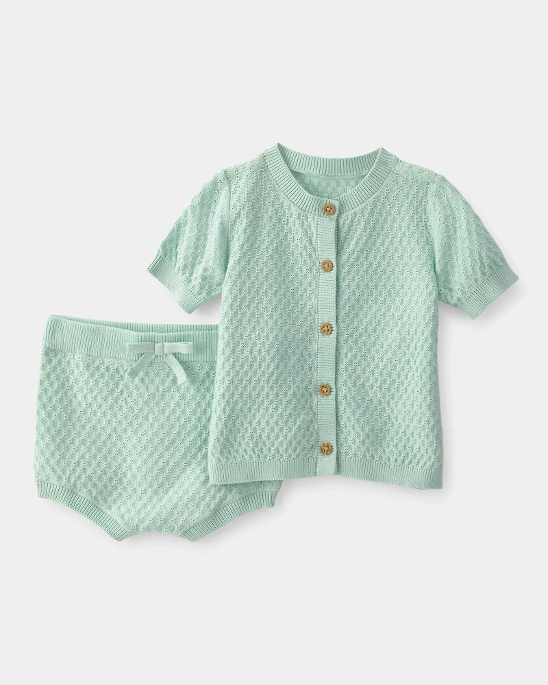Baby Girl 2-Piece Crochet Top & Short Set - Green
