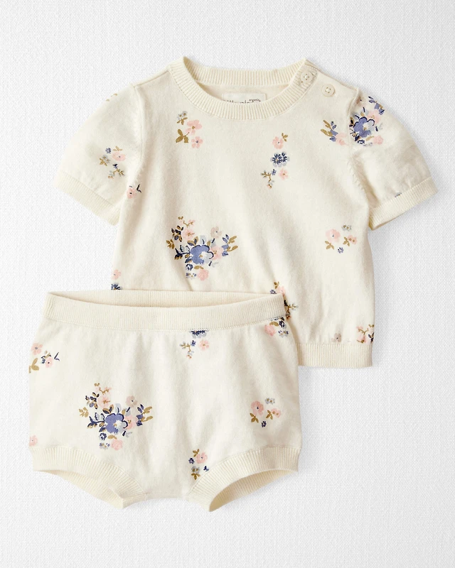 Baby Girl 2-Piece Organic Cotton Sweater Knit Set Cosmos Garden Print