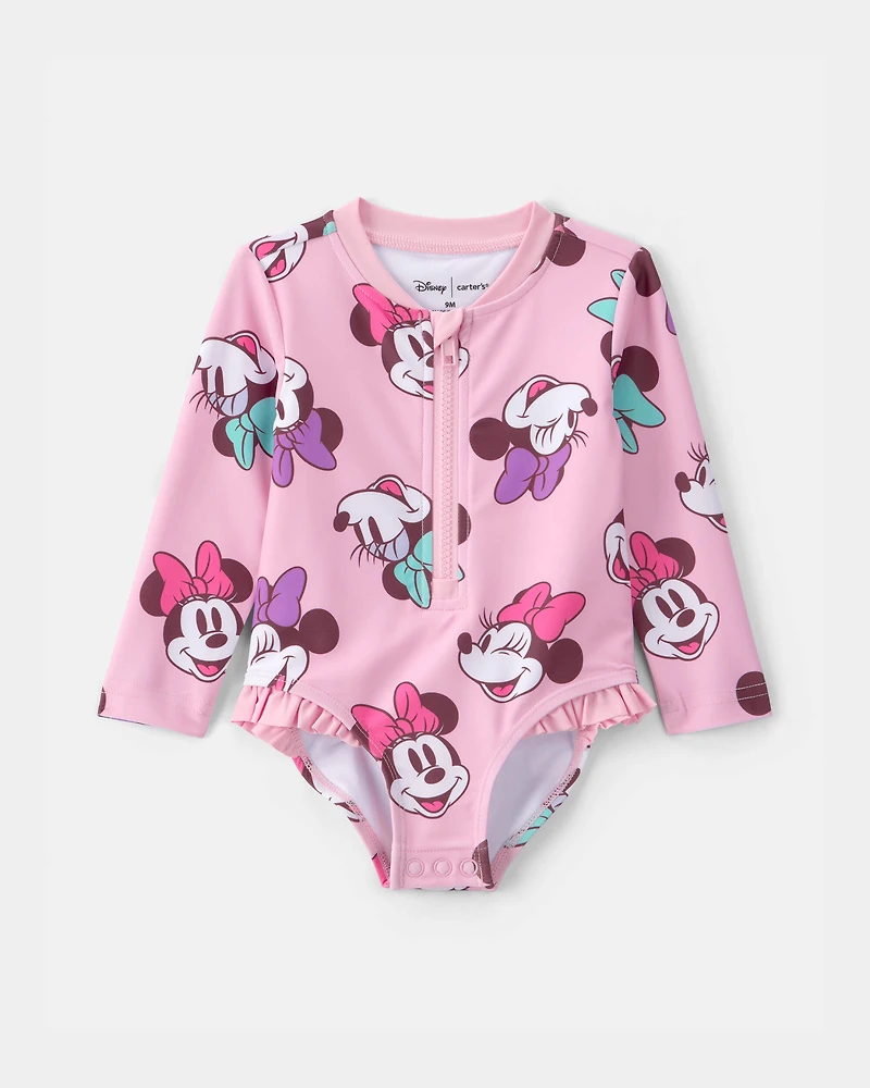 Baby Girl Disney© Minnie Mouse Gingham Long-Sleeve 1-Piece Swimsuit - Pink