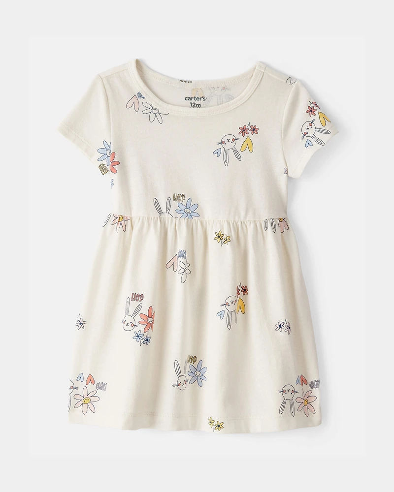 Baby Girl Easter Bunny Short-Sleeve Dress - Cream