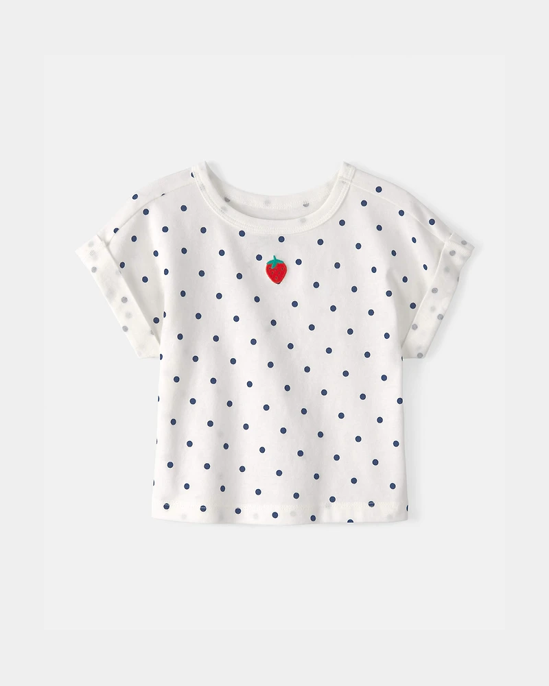 Dress your little one in effortless style with the Baby Girl Strawberry Polka Dot Top - White. Made from soft fabric, it ensures all-day comfort for your active child. The playful polka dot pattern brings a touch of fun, while the sweet strawberry detail adds a charming twist. Designed for easy dressing, it features a relaxed fit that allows for freedom of movement. Perfect for casual outings or playdates, this top pairs beautifully with shorts or leggings. Trust in Carter’s legacy of quality and style, knowing your child looks great while feeling comfy and confident all day long.
