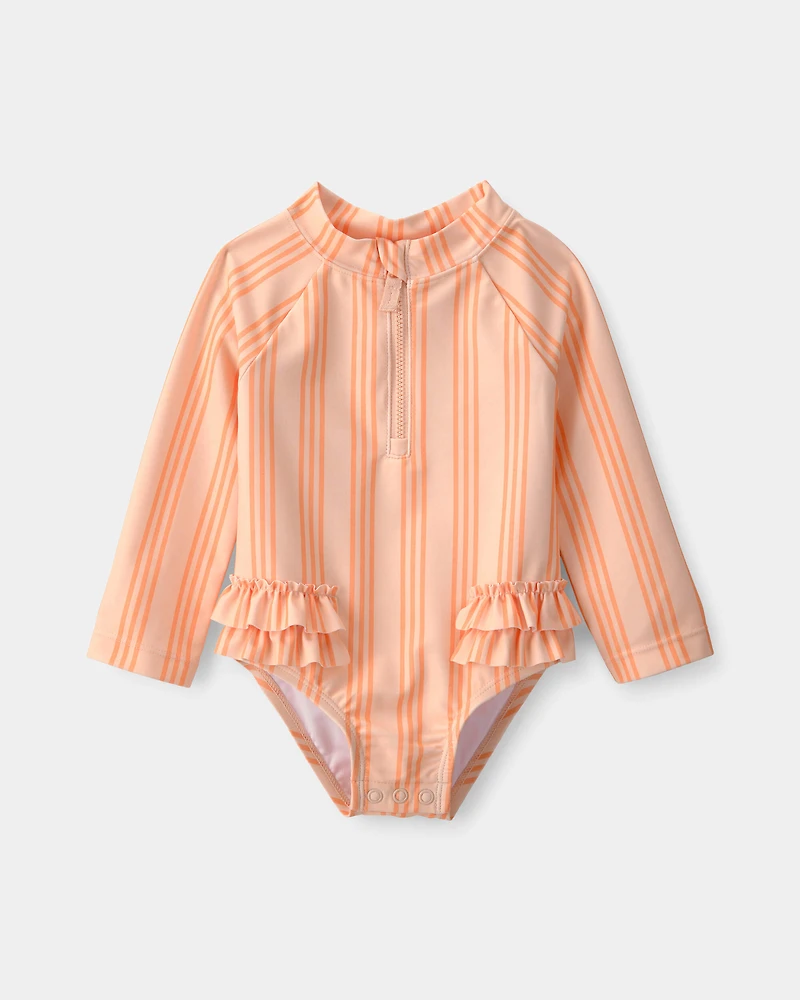 Baby Girl Striped Long-Sleeve 1-Piece Swimsuit - Orange