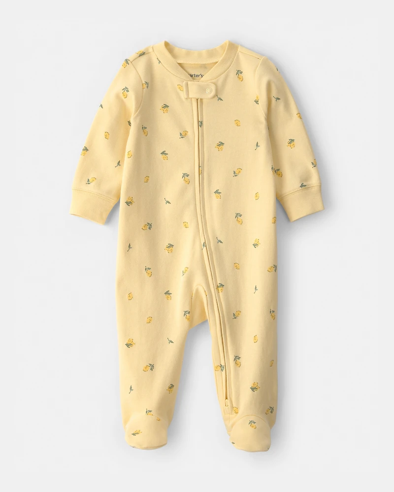 Baby Lemon 2-Way Zip 100% Cotton Sleeper - Yellow