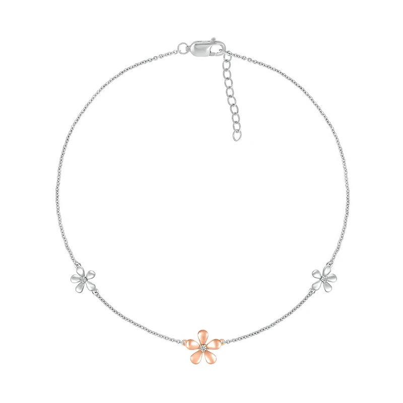 Bella Moda Sterling Silver & 10K Rose Gold Diamond Flower Anklet
