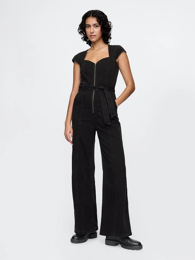 AE77 Premium Wide-Leg Denim Jumpsuit