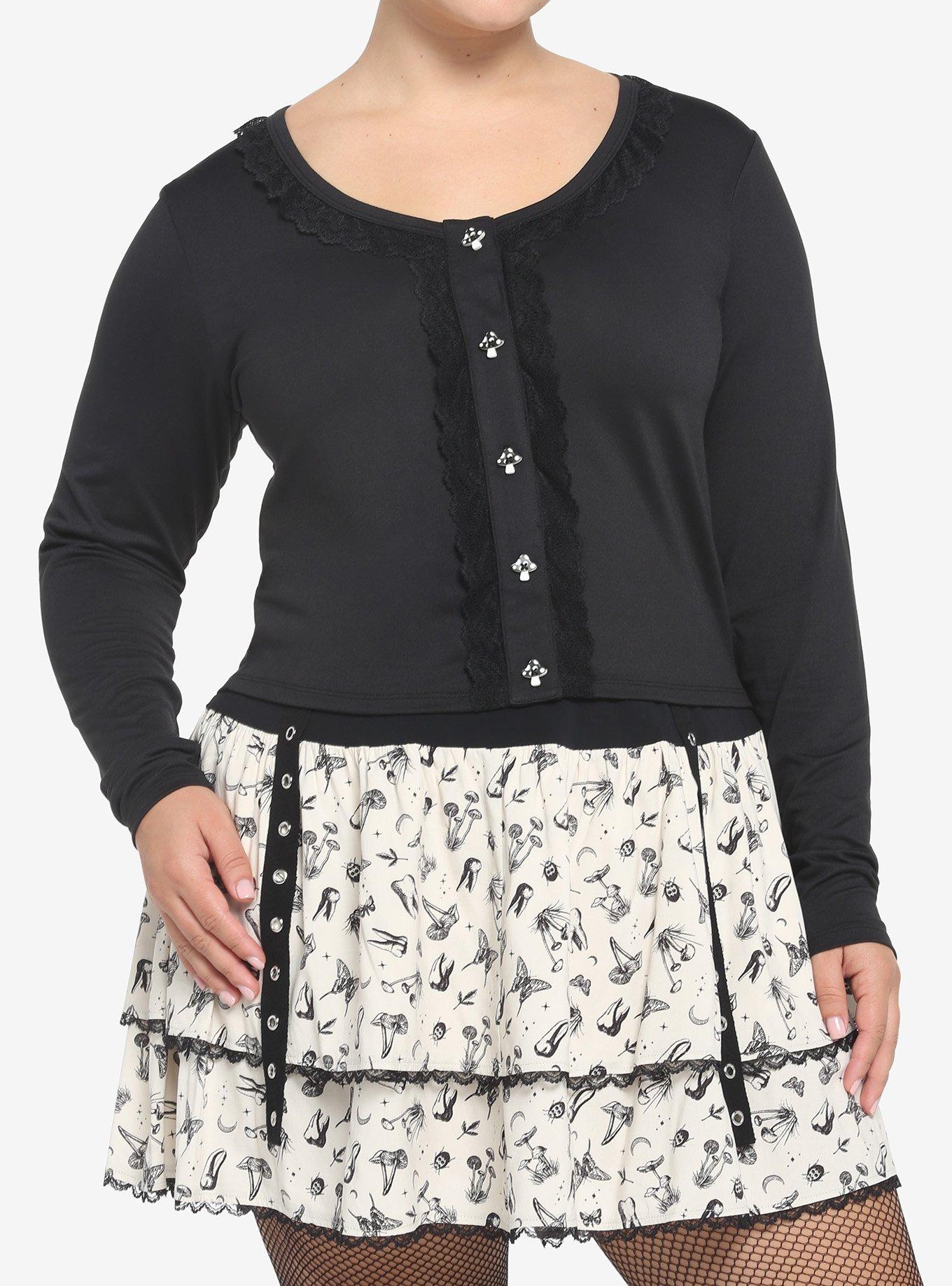Black Mushroom Girls Crop Long-Sleeve Top Plus Size
