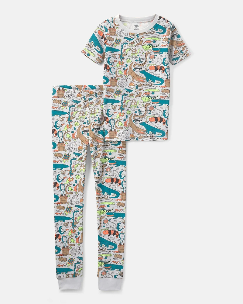 Boys Alligator 100% Cotton Snug Fit 2-Piece Pajama Set - Grey